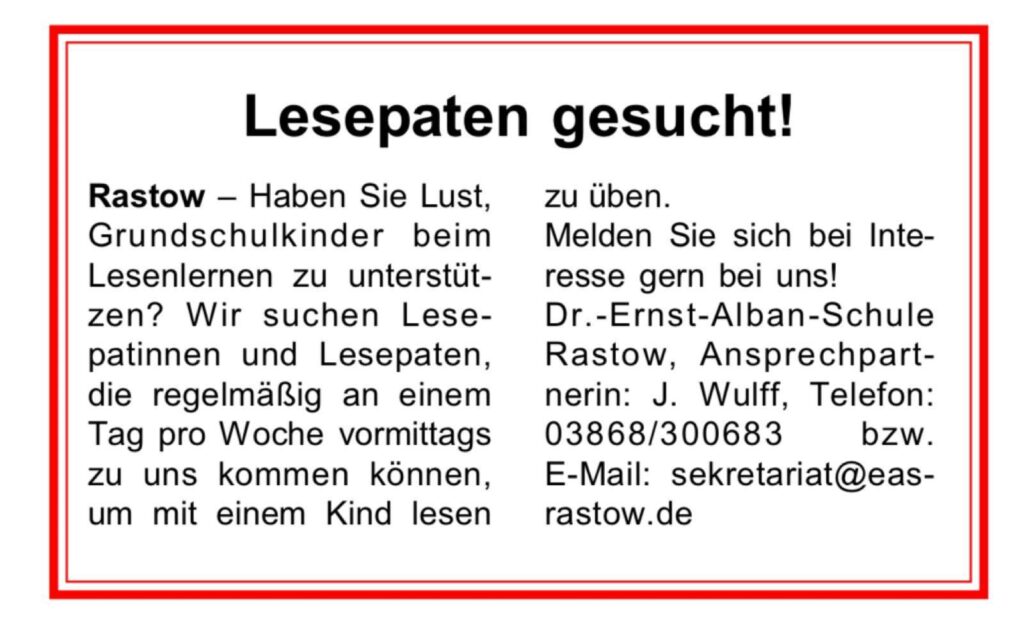 Den Staffelstab geben wir nun weiter an die Volkssolidarität Rastow sowie den Nahkauf Rastow.