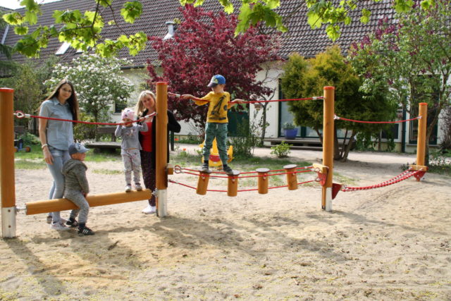wir hoffen, dass bald wieder Normalität in den Kindergartenalltag einkehrt. Wir vermissen euch hier sehr. In der Zwischenzeit hat das Kitateam mit unserem Hausmeister Stefan Schmedemann eine neue Balancierstrecke aufgebaut. Diese haben wir uns aus Spendengeldern finanziert. Dafür möchten wir uns bei den großzügigen Eltern bedanken. TeamHoff GmbH und Parkett & Bodenleger Sascha Höhr haben uns Gelder dafür gespendet. Zudem hat Juliane Höfs von ihrem Arbeitgeber, der WBS Training AG, Spenden akquiriert und wir haben einen Teil der Einnahmen von unserem Weihnachtsmarkt aus 2019 verwendet. Die Kinder in der Notbetreuung sind begeistert von den Funktionen des neuen Spielgeräts. Für unsere Kleinsten haben die ErzieherInnen ein neues Spielhaus aufgebaut, welches unsere Auszubildene Sophie, aus dem 2. Lehrjahr, gestrichen hat.