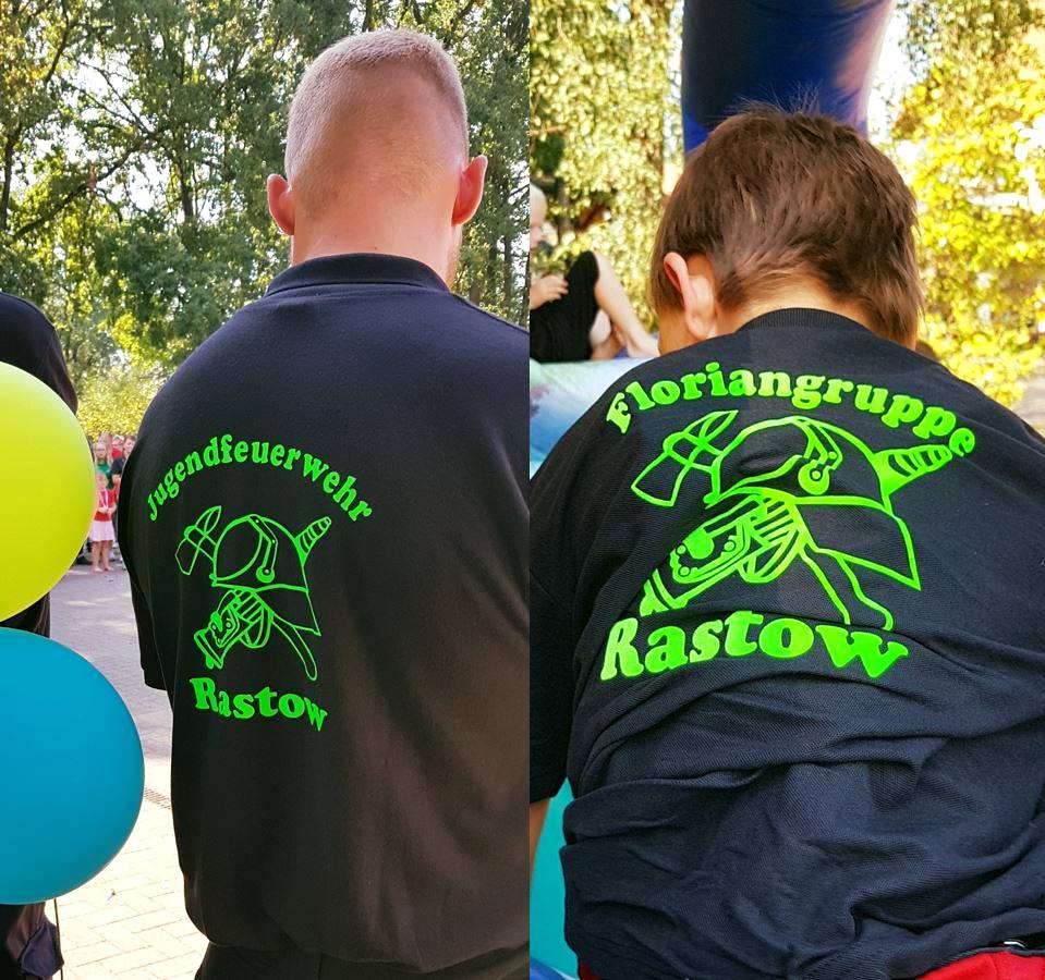 Die Firmen Zachert & Co. GmbH (www.zachert-co.de) sowie Manfred Stier GmbH (www.manfred-stier-gmbh.de) lassen die Jugendfeuerwehr sowie die Floriankinder der Feuerwehr Rastow „echt cool“ aussehen!