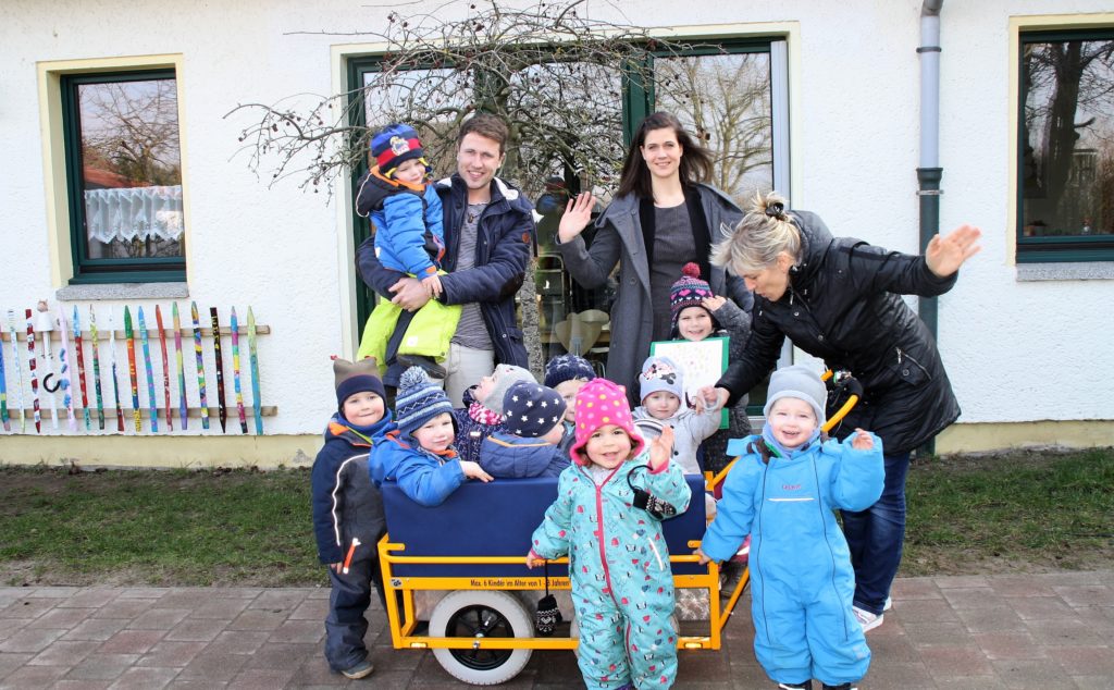 Kurz vor Weihnachten kam die freudige Nachricht von Juliane Höfs, dass ihr Arbeitgeber WBS Training AG, ein Bildungsträger aus Schwerin, die stolze Summe von 2500,- € für unsere Kita spendet. Die engagierte Mutter von Emma und sechs weitere ihrer Kollegen haben auf ihr Weihnachtsgeld verzichtet. Andreas Sadebeck, Jörg Lojewski, Jens Kloss, Grit Fechtler, Ingmar Huft und Stephanie Teichler waren großzügig und spendeten uns ihren Anteil. Der Arbeitsgeber WBS Training AG Schwerin war besonders spendenfreudig und rundete den Betrag auf. Wir haben uns riesig darüber gefreut und wussten sofort wofür wir dieses Geld investieren wollten. Das Kitateam war sich einig, wir benötigen u.a. einen neuen Sechssitzer für unsere Jüngsten. Die bisherigen stammen noch aus DDR- Zeiten und wurden bereits häufig repariert. Zudem haben wir seit diesem Schuljahr sechs weitere Krippenplätze bei den Lütten Swölken und nun eine Kapazität von 42 Krippenkindern. Marion Gösicke begleitet aktuell die Eingewöhnungsphase unserer Kleinsten und ist begeistert von dem neuen Krippenwagen. Von dem restlichen Geld planen wir Schallschutzelemente für unser Bistro, denn eine entspannte Atmosphäre zu den Mahlzeiten ist uns wichtig.