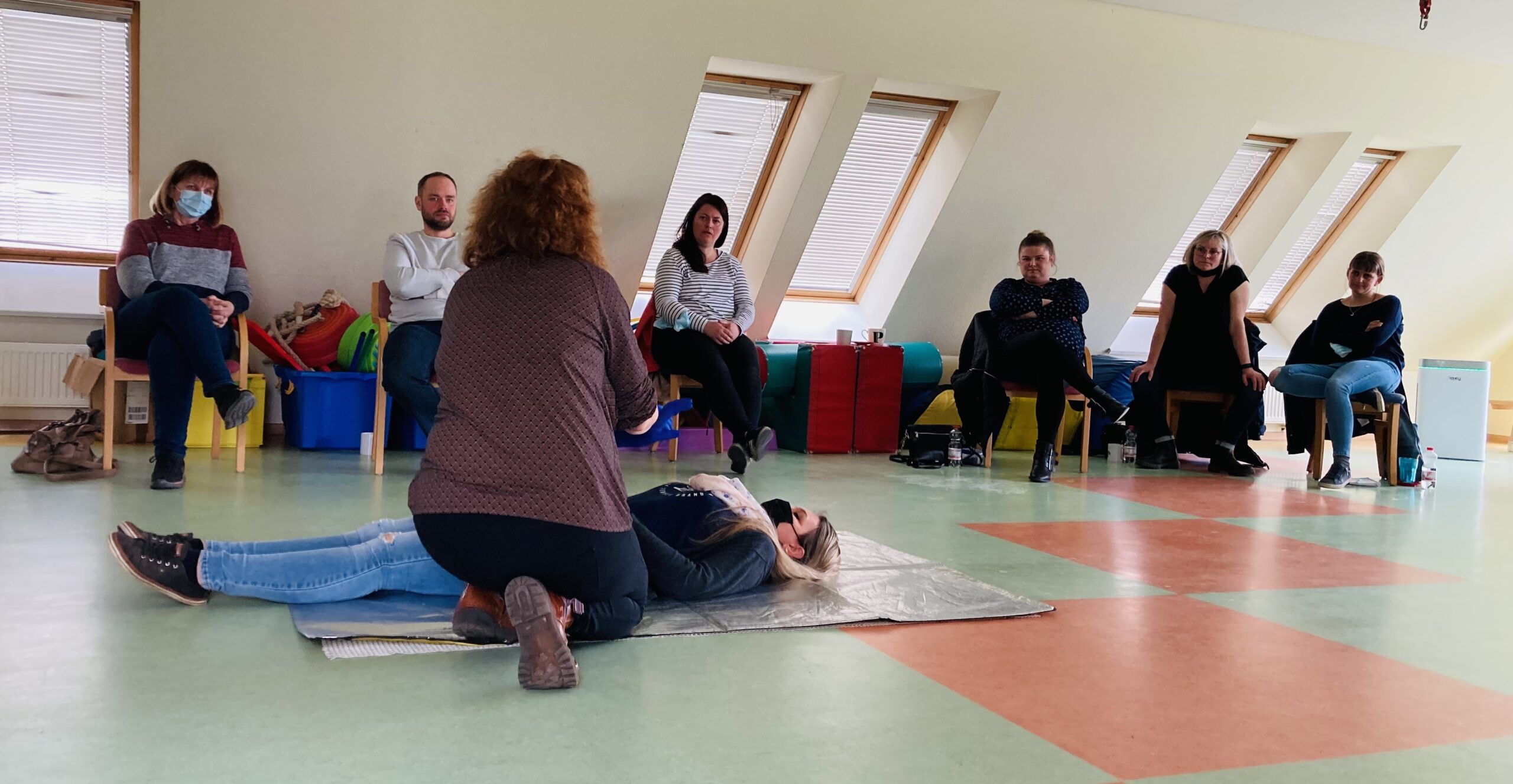 Am 2. und 4. Märzwochenende hieß es für das gesamte Kitateam: Üben für den Ernstfall. Alle 2 Jahre frischen wir unseren 1. Hilfe – Kurs auf, um Erlerntes wieder in Erinnerung zu rufen. Frau Linowitzki führte uns mit vielen praktischen Tipps und Fallbeispielen durch den Kurs. Gemeinsam gingen wir durch unser Kitagebäude und über das gesamte Gelände, um mögliche Unfallquellen rechtzeitig zu entdecken. Neu war für uns der Umgang mit dem Defibrillator, dieses Gerät soll zukünftig auch für Kitas bereitgestellt werden.