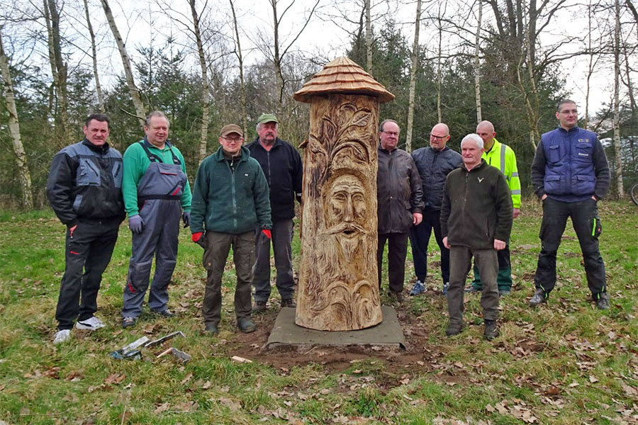 Die Kraaker Streuobstobstwiese ist um einen Augenweide reicher. Seit kurzem steht hier ein künstlerisch gestalteter Bienenstamm. Ganz früher einmal wurde auf so eine Art Honig gewonnen. Spaziergänger bleiben erstaunt stehen und so mancher besichtigt die Neuheit mit den Schnitzereien aus der Nähe.