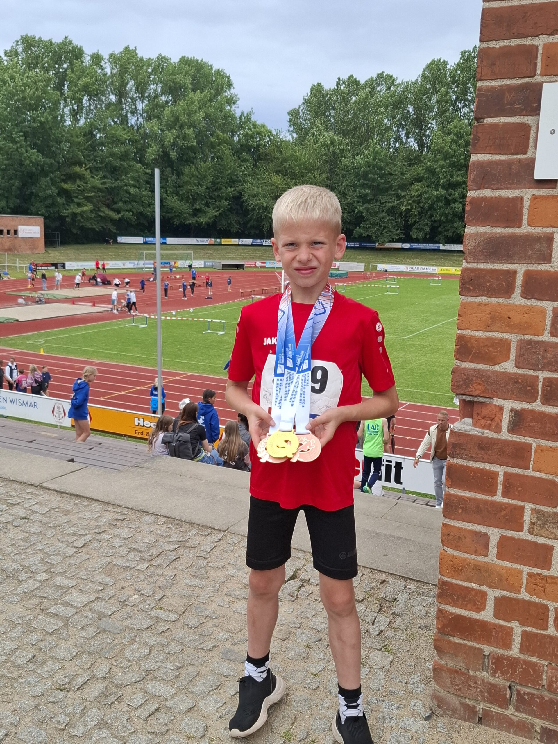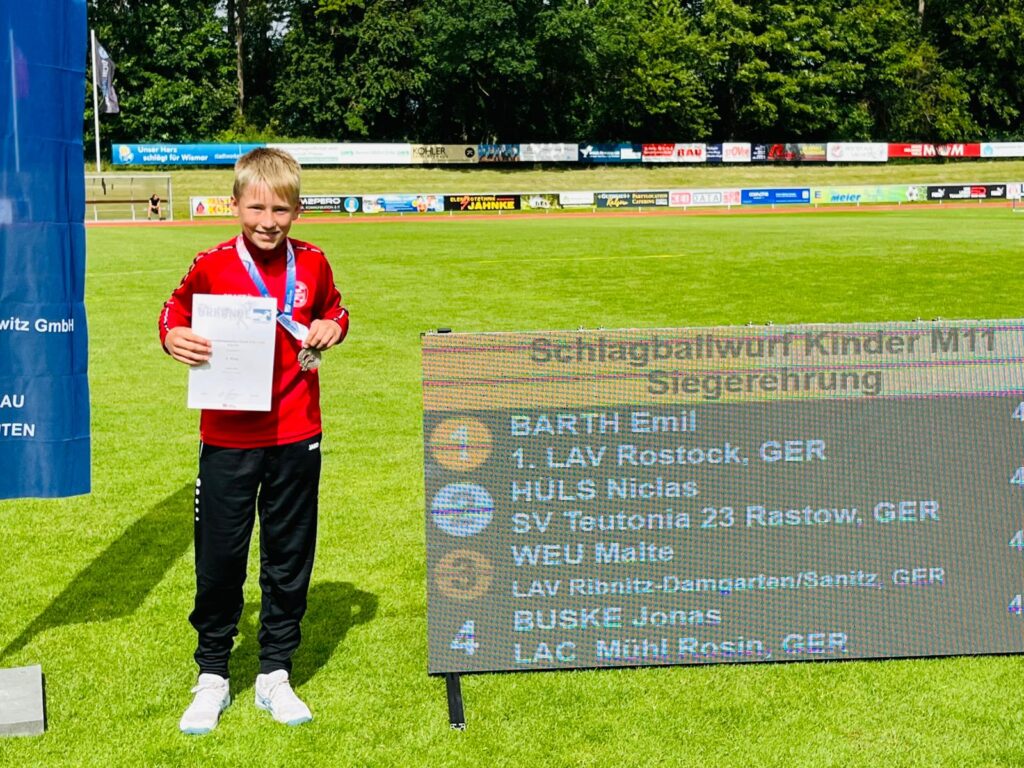 Trotz etwas Regen, kleinerem Rastower Teilnehmerfeld als gewohnt und rutschiger Bahn – die Landesmeisterschaften der Altersklassen U10 und U12 in Wismar waren ein Fest der Emotionen, der Freude und des sportlichen Ehrgeizes. Für einige Kinder war es der erste große Wettkampf, und sie zeigten mit Herz und Einsatz, dass sie zu Recht dort standen, wo sie standen – auf dem Sportplatz, im Mittelpunkt und teils sogar auf dem Podest.