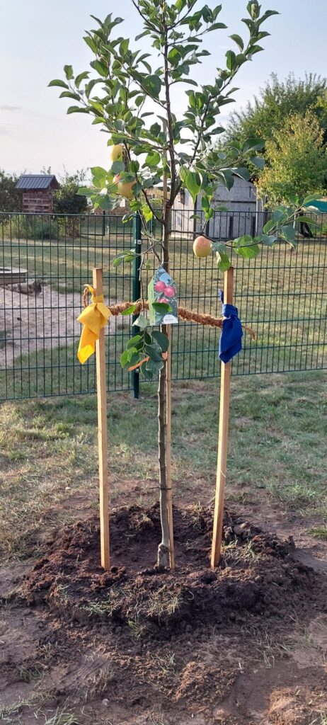 Wir haben unseren Apfelbaum auf den Naturspielplatz der KiTa Rastow gepflanzt- als Zeichen unserer langjährigen Zusammenarbeit.