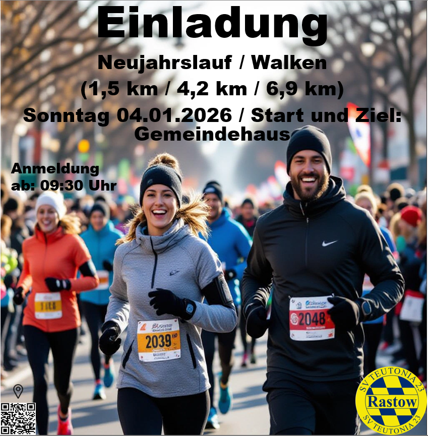 „Das war ein toller winterlicher Start ins neue Jahr!“ freute sich das Organisationsteam des 12. Rastower Neujahrslaufes, der am 4.Januar nicht nur für Vereinsmitglieder stattfand. Der SV Teutonia 23 Rastow e.V. hatte eingeladen und Sportbegeisterte aus 20 Gemeinden, von Wittenburg bis Schwerin, folgten der Einladung.