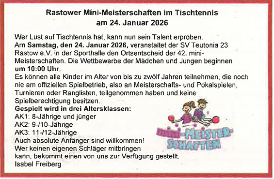 Aktuelles, SV Teutonia 23 Rastow