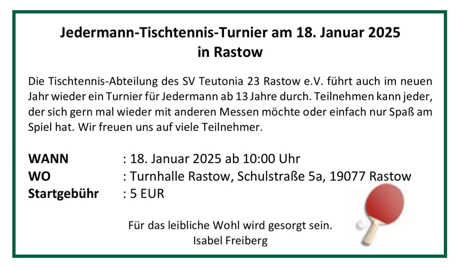 beim Jedermann- Tischtennis- Turnier am 18. Januar …