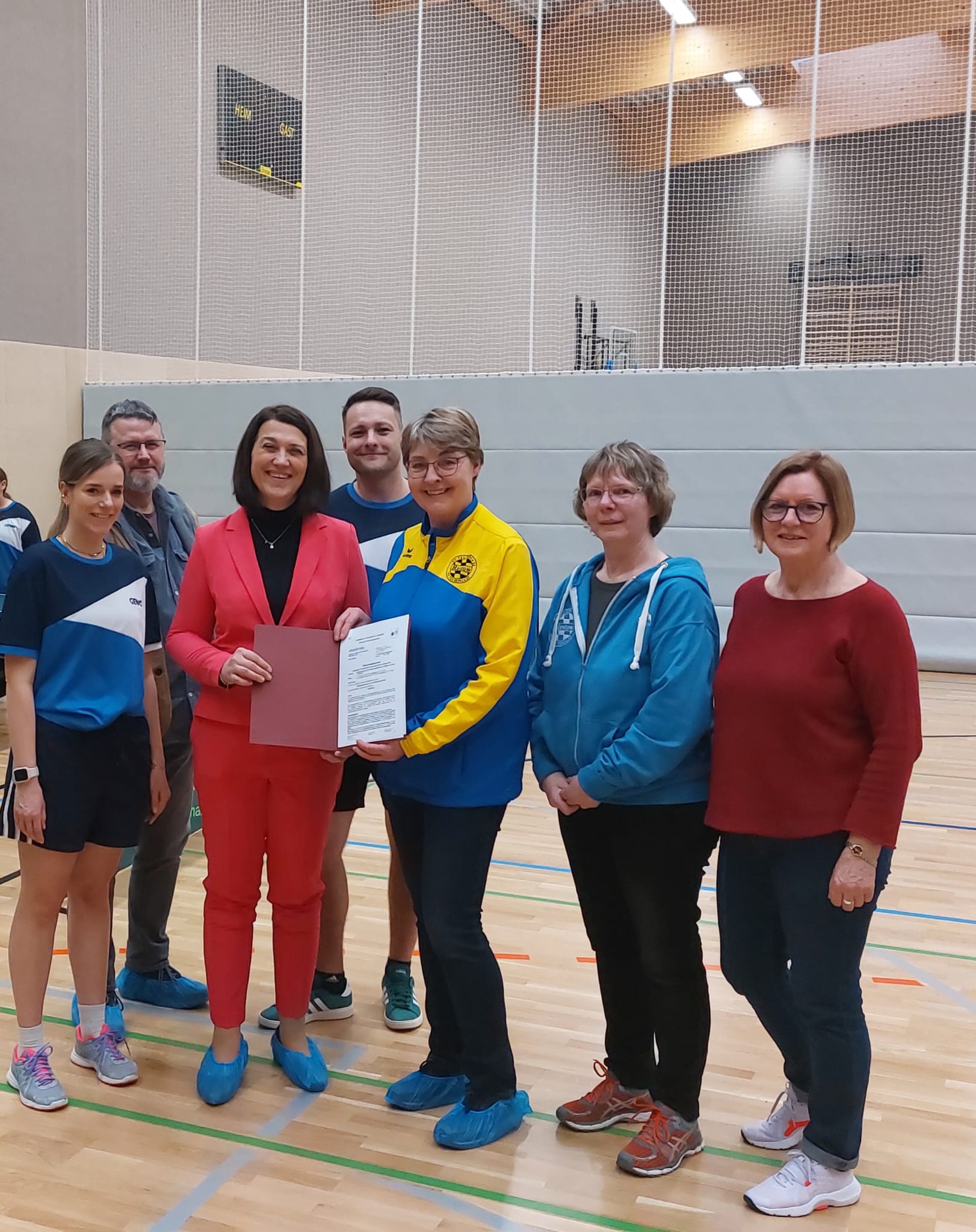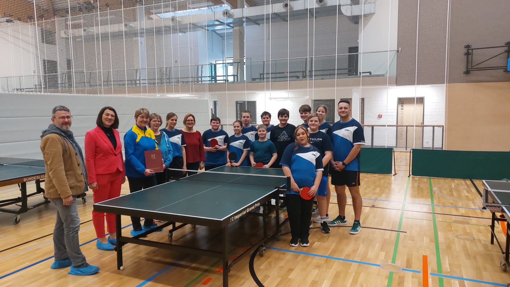 In der Sektion Tischtennis/ Kinder können sich die Übungsleiter Isabel Freiberg und Robyn Fordinal nicht über mangelnde Nachfrage beklagen. Im Gegenteil: mit der neuen Halle bietet sich mehr Platz für das Training an. Nun brauchte man aber noch mehr Sportausstattung. Sportfreundin Brigitte Behrendt kümmert sich um Fördermittel für den Verein und fand im Oktober 2024 eine Möglichkeit mit dem „Bürgerfonds“ des LAGuS. Gesagt-getan! Letzte Woche nun überreicht uns Frau Ministerin Bernhardt den Zuwendungsbescheid über 2550,00 Euro für die Ausstattung der Sportgruppe und informierte sich vor Ort über Pläne und Vorhaben der Vereines Teutonia 23 sowie der Gemeinde Rastow.