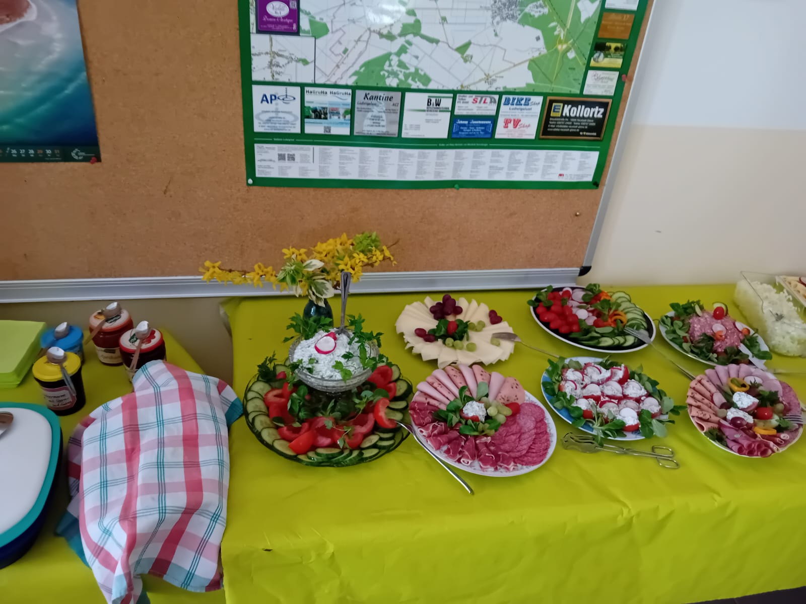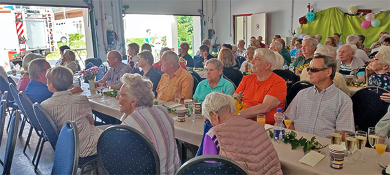 Die Feuerwehr stellte ihre leere Fahrzeughalle zur Verfügung, so dass die Vorstandsmitglieder sie einräumen und schön dekorieren konnten.